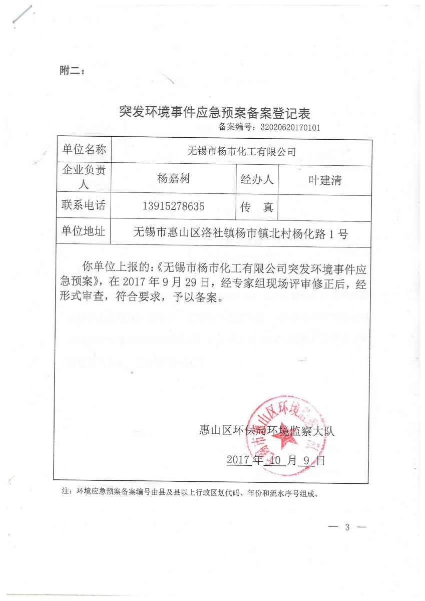 應(yīng)急預(yù)案備案登記表